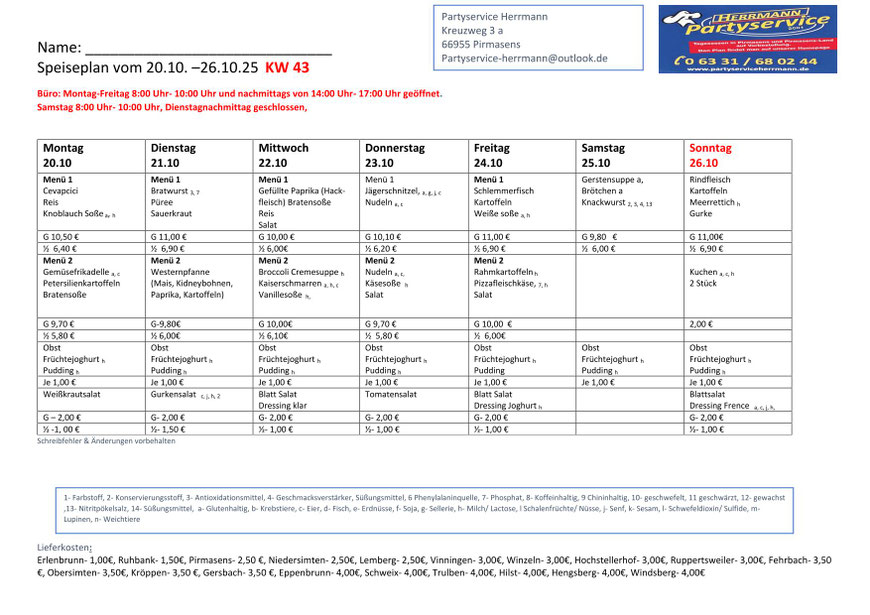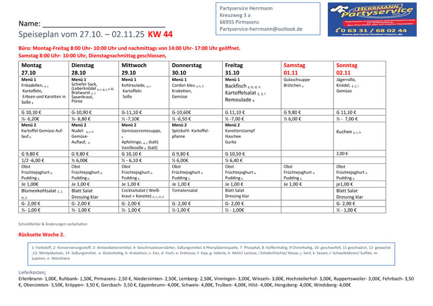 Den Plan für unser Mittagsmenü können sie ich auch gerne Downloaden und Ausdrucken.